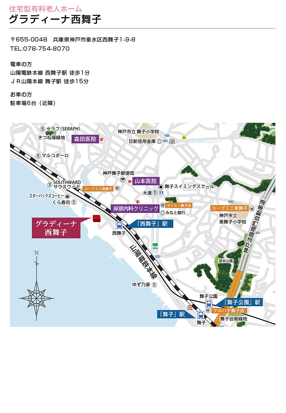 兵庫県神戸市にある住宅型有料老人ホーム グラディーナ西舞子への地図